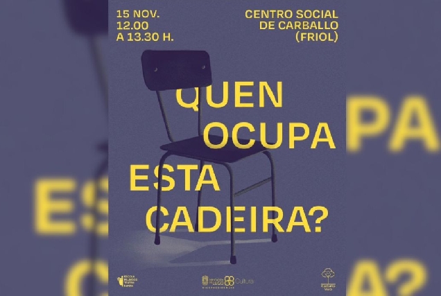 O Centro Social de Carballo, en Friol, acollerá a proposta teatral ‘Quen ocupa esta cadeira?’ de Palimoco