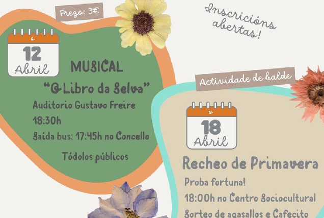 Ademais, o sábado 18 celebrarse a actividade Recheo de Primavera, que terá lugar ás 18.00 horas