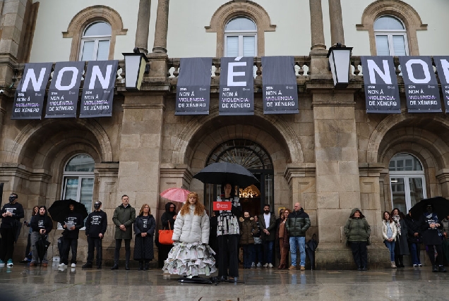 O Concello reuniu veciñanza e colectivos nun acto marcado pola choiva e pola lectura dun manifesto contra a violencia machista